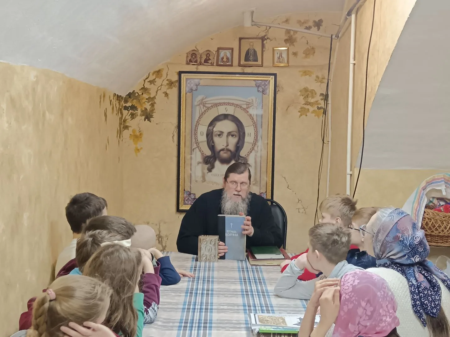В воскресной школе прошли тематические занятия, посвященные Дню православной книги. Клирик протоиерей Вадим Пирогов рассказал ребятам о православной литературе.